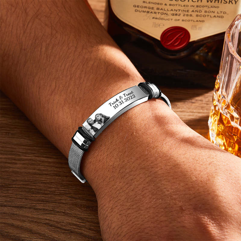 Pulsera Personalizada De Acero Inoxidable Para Hombre, Regalo De Aniversario Para Personalizar Su Fecha Especial, Regalo De Halloween