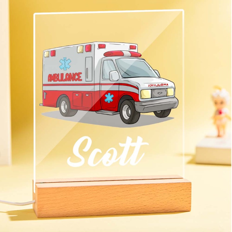Lámpara De Ambulancia De Luz Nocturna Para Niños Con Nombre Para Niño Regalo De Cumpleaños La Decoración Del Dormitorio