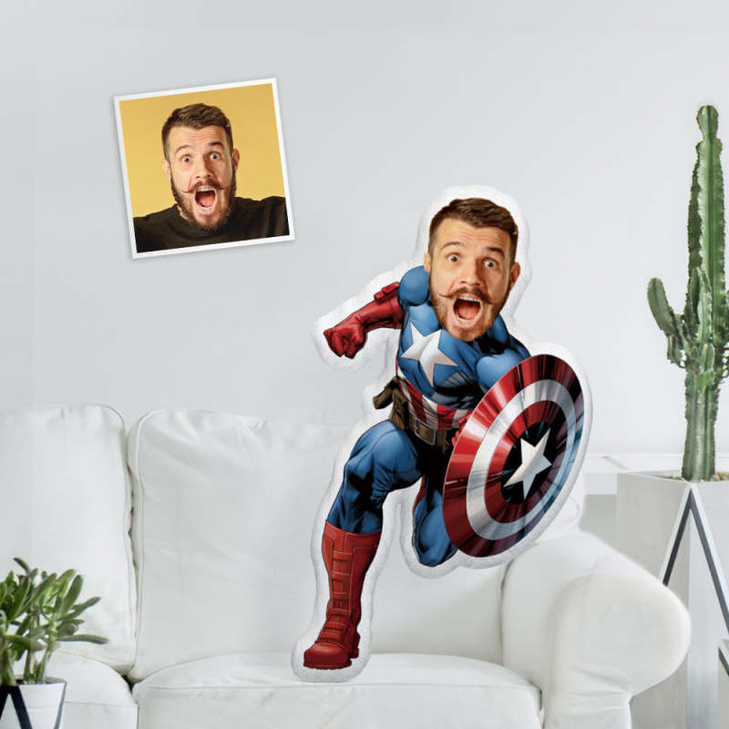 Foto De Cara Personalizada Minime Doll Capitán América Minime Throw Pillow Un Regalo Único Y Genial