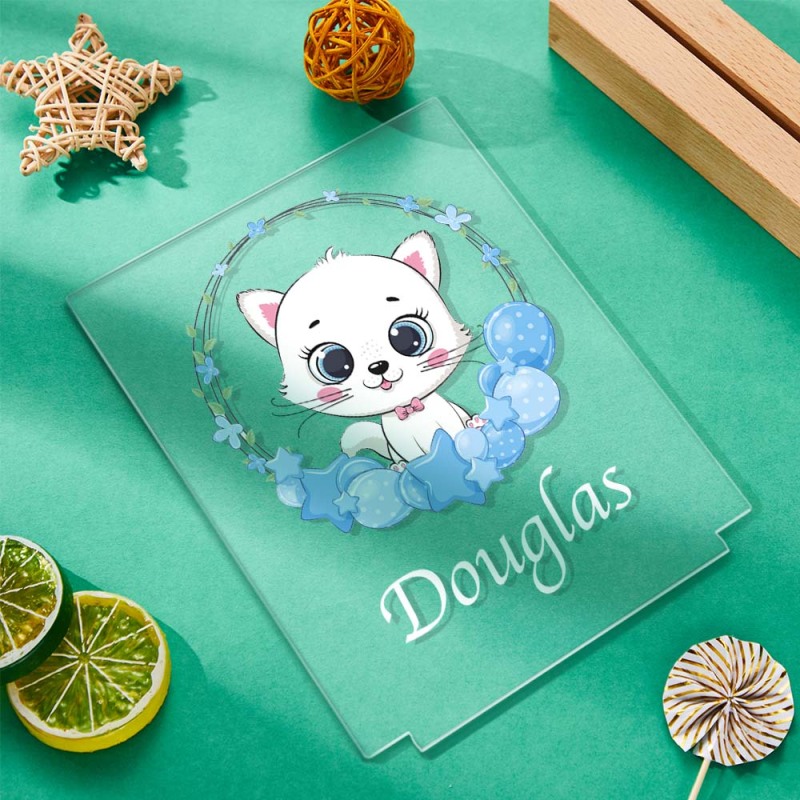 Gato Lindo Personalizado Con Luz De Noche De Guardería De Globo Azul Para Dormitorio De Niña