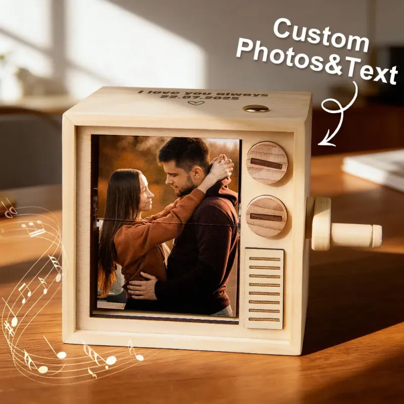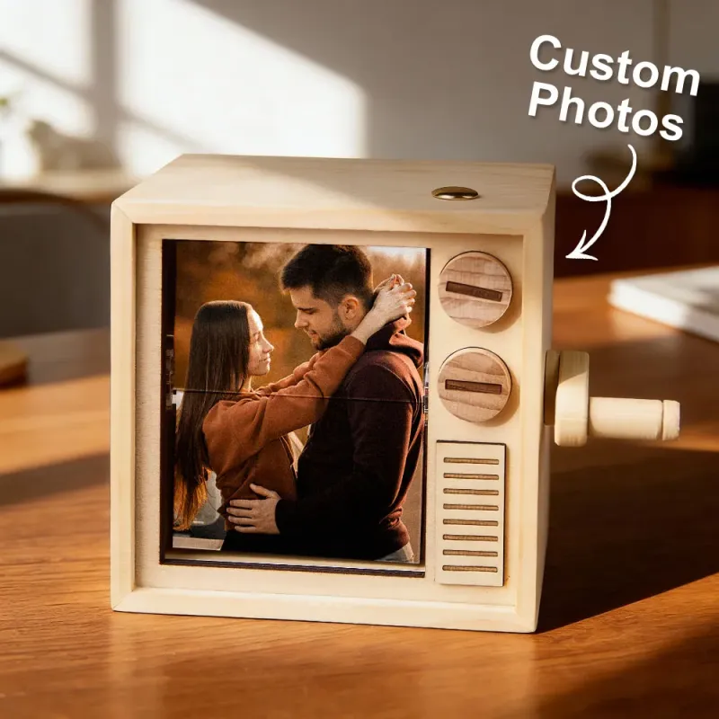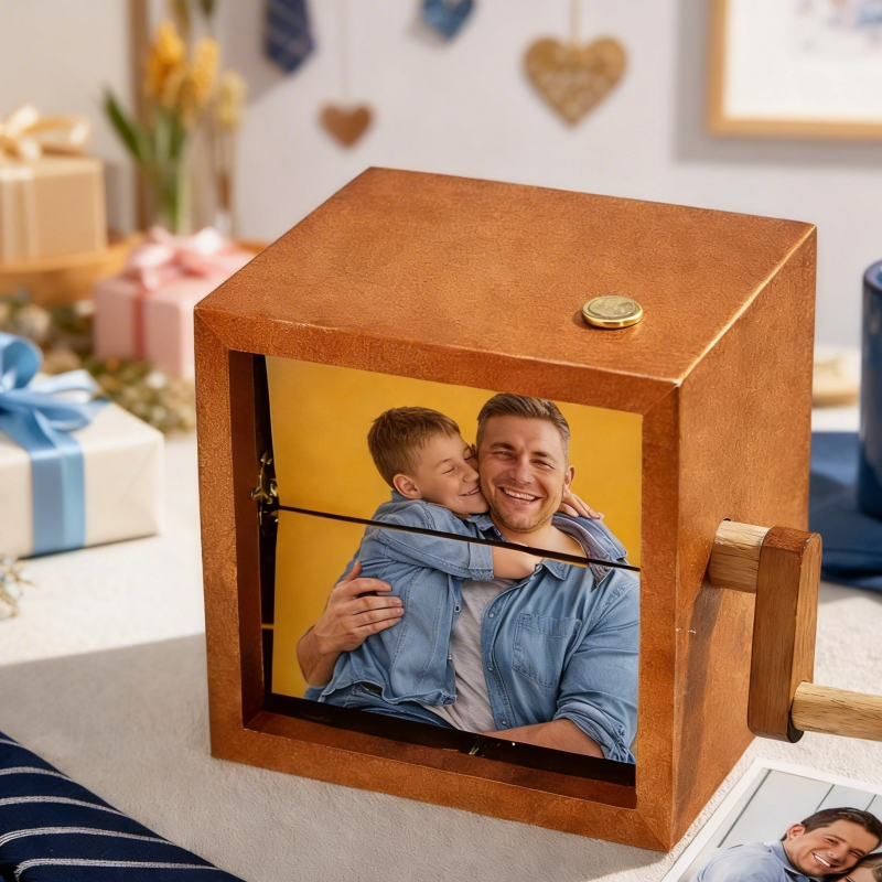Caja De Libro Plegable Con Manivela Personalizada, Máquina De Animación, Álbum De Fotos Mecánico Con Manivela Y Marco De Cubo De Fotos Para Bebé De Nogal Negro Claro, Regalo Para El Día Del Padre