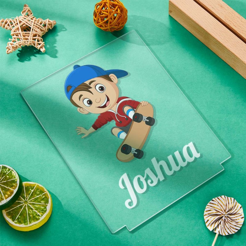 Luz De Noche Acrílica Con Nombre Personalizado Para Decoración De Habitación De Lámpara Led De Monopatín De Juego De Niño