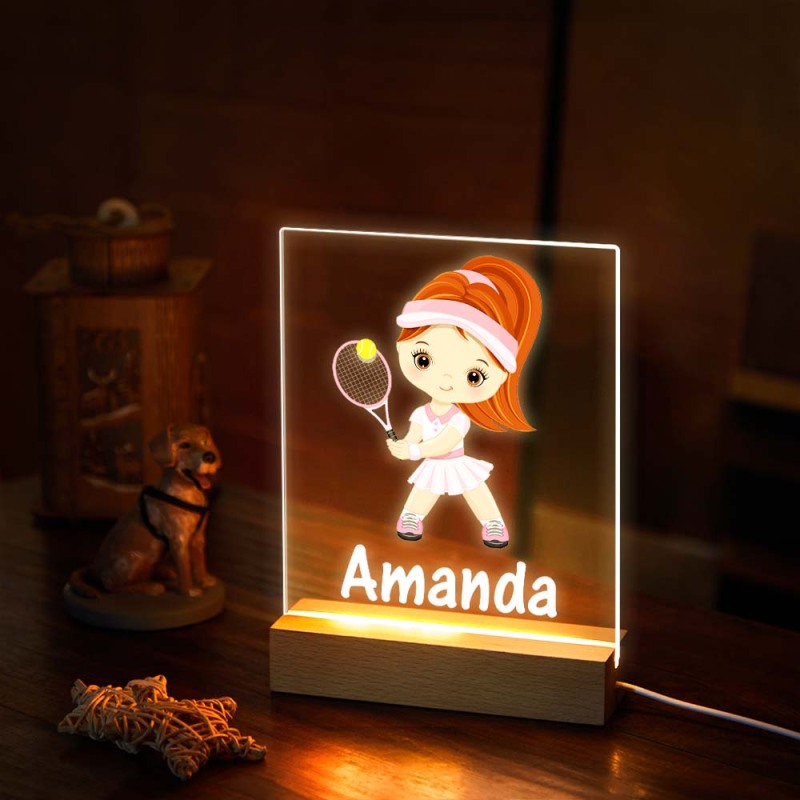 Nombre Personalizado Acrílico Night Light Play Badminton Girl Para La Decoración Del Dormitorio De Los Niños