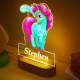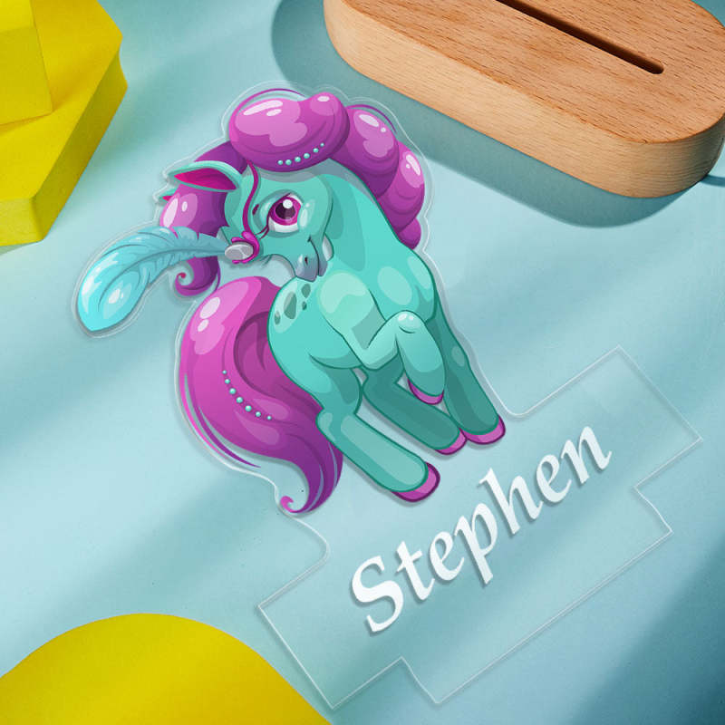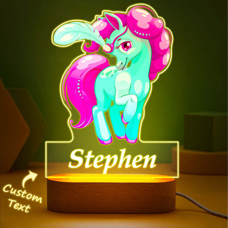 Nombre Personalizado Unicornio Verde Con Luz Led De Pelo Rosa Para Dormitorio De Niña