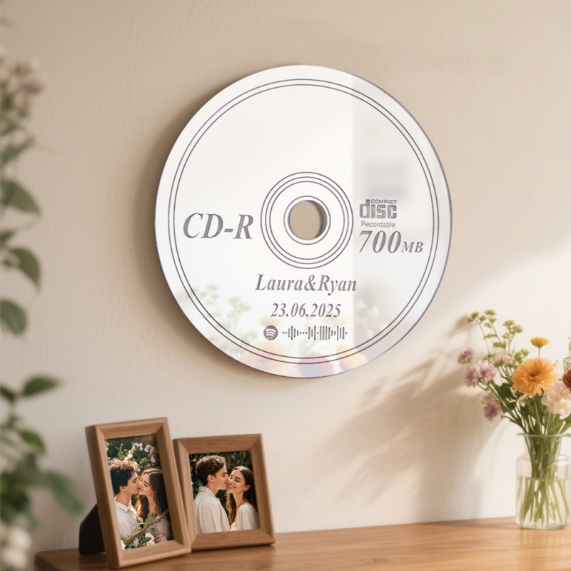 Espejo Con Nombres Personalizados Y Música Para Pared, Espejo Con Cd, Art Déco, Regalo De Inauguración De La Casa, Decoración De Pared Con Espejo, Espejo Para Dormitorio