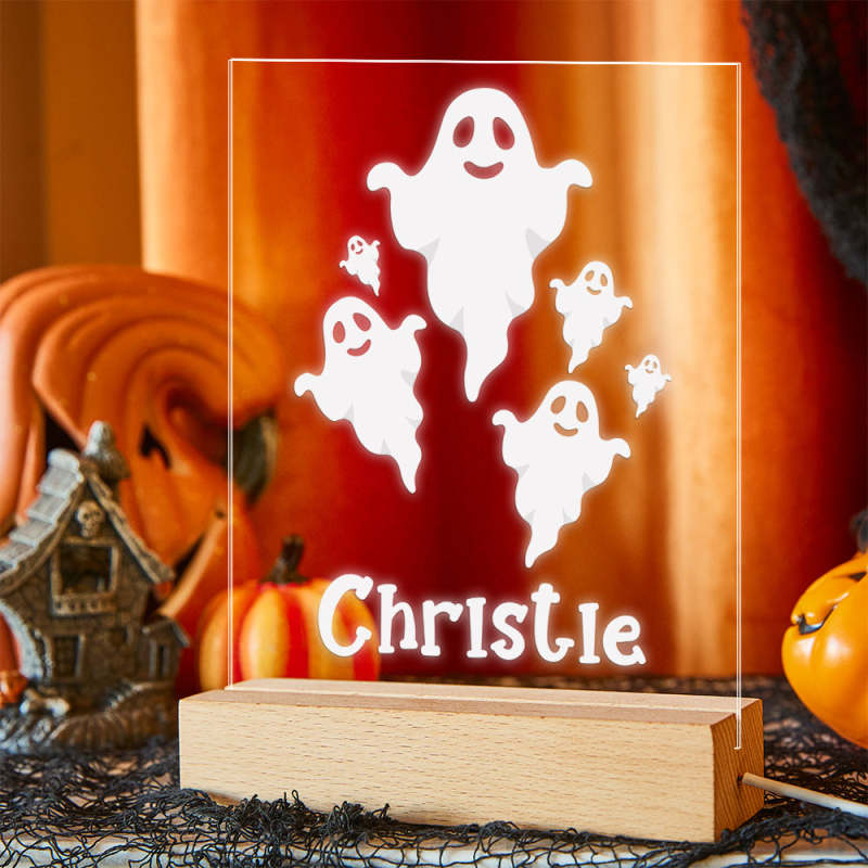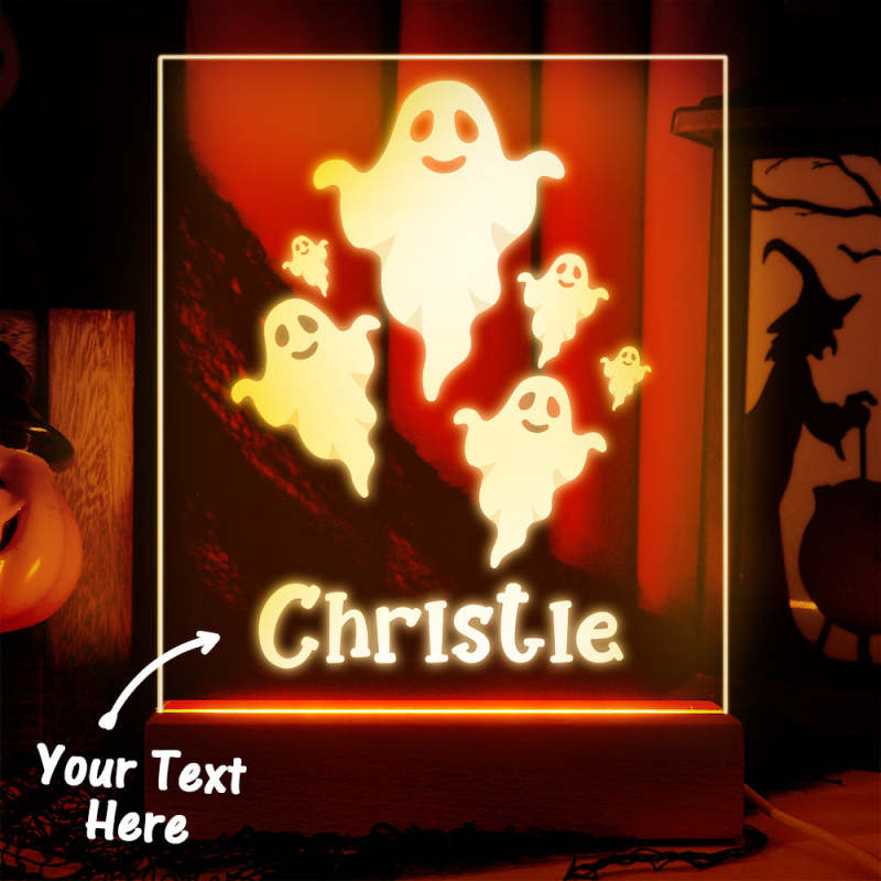 Luz De Noche De Fantasma Espeluznante De Halloween Con Lámpara De Escritorio Con Nombre Personalizado