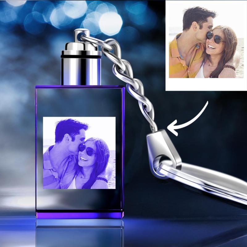 Llavero de Foto Personalizada de Cristal en Forma de Rectángulo de Pareja