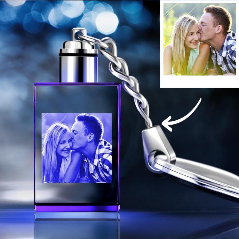 Llavero de Foto Personalizada de Cristal en Forma de Rectángulo de Pareja Besándose