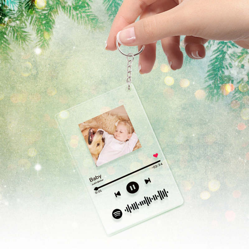 Regalo del Día del Padre Spotify Vidrio Llavero Escaneable Personalizado Placa de Música de Código Spotify Llavero(5.4CM* 8.6CM)