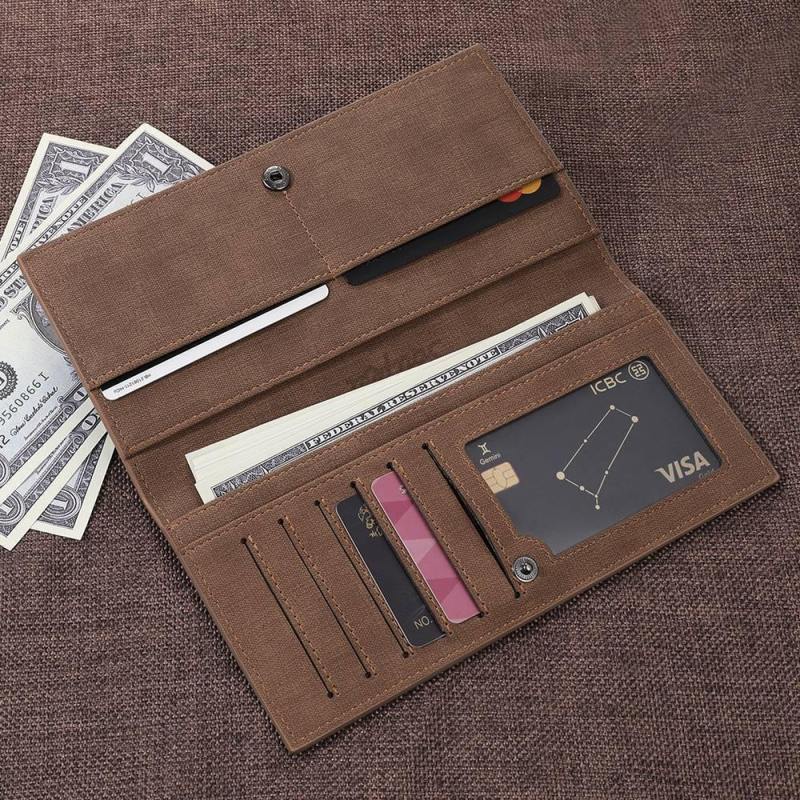 Hombre Cartera Plegable Con Foto Grabable Personalizada De Estilo Largo - Cuero Marrón