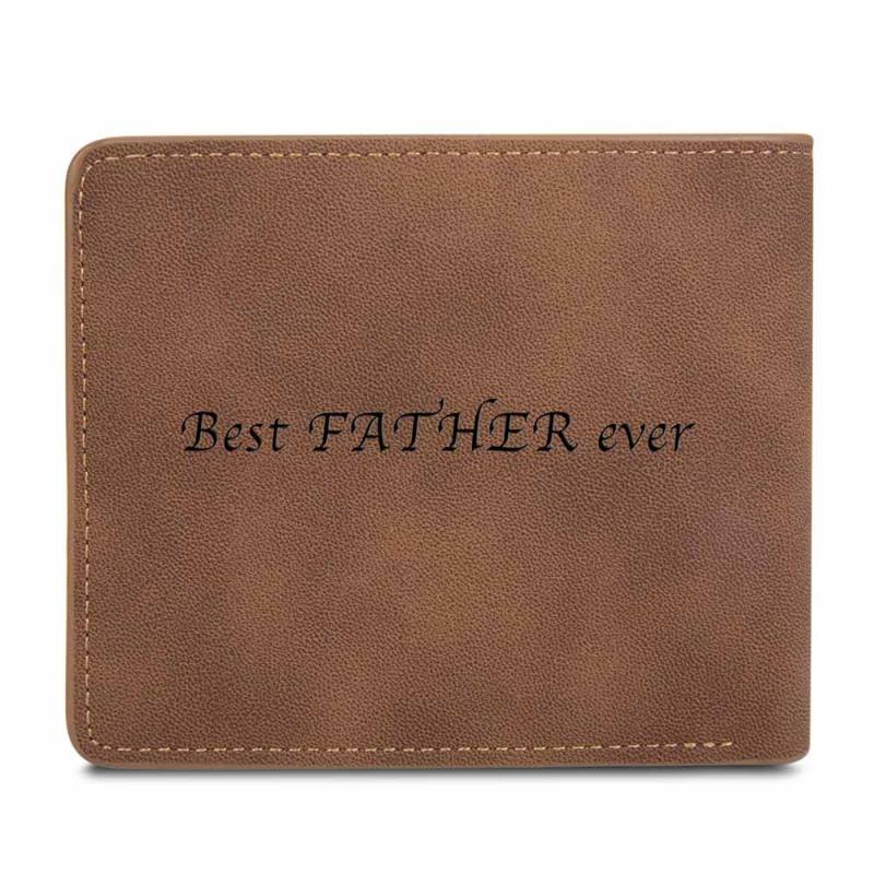 Hombre Cartera Plegable Con Foto Grabable Personalizada Con Inscripción - Cuero Marrón