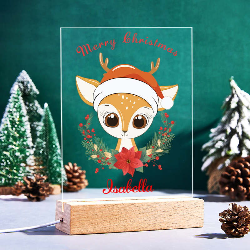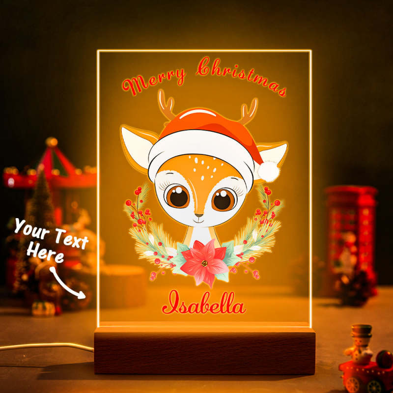 Feliz Navidad Lindo Ciervo Personalizado Noche Luz Guardería Habitación Decoración Led Noche Señal