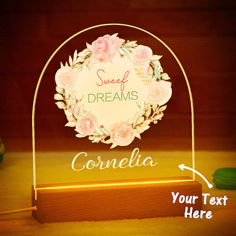Luz De Noche Led Personalizada Con Corona De Colores Para Que La Niña Tenga Un Dulce Sueño