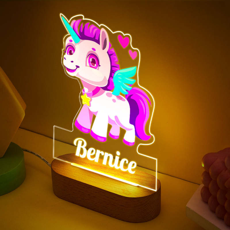 Nombre Personalizado Noche Luz Rosa Unicornio Led Luz Habitación Decoración Para Niñas