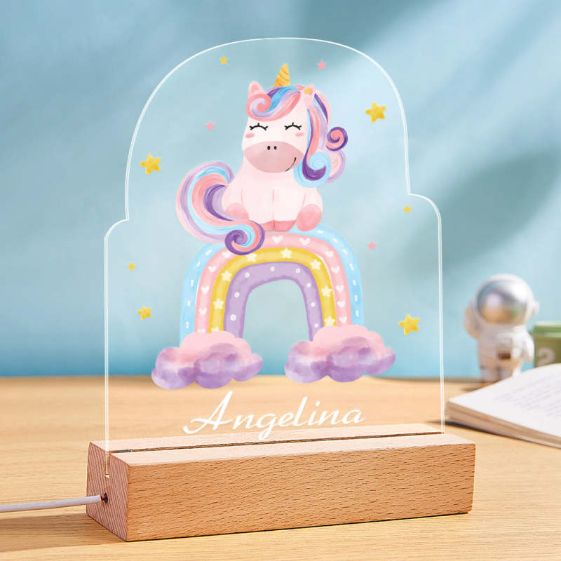 Señal De Nombre Personalizada, Luz De Noche Led, Decoración De Guardería De Arco Iris Y Unicornio Bohemio