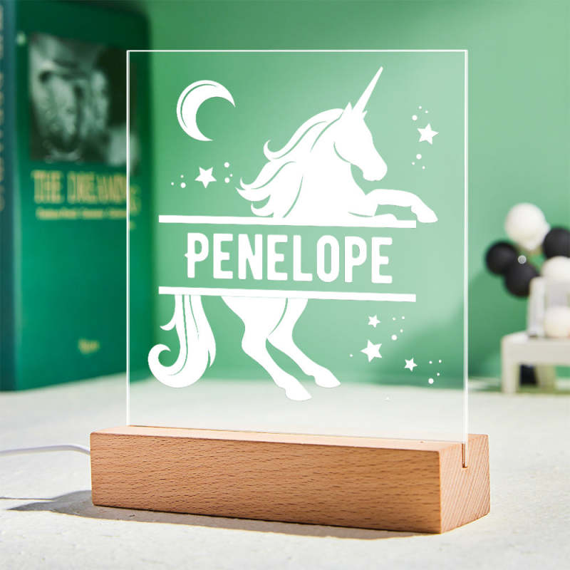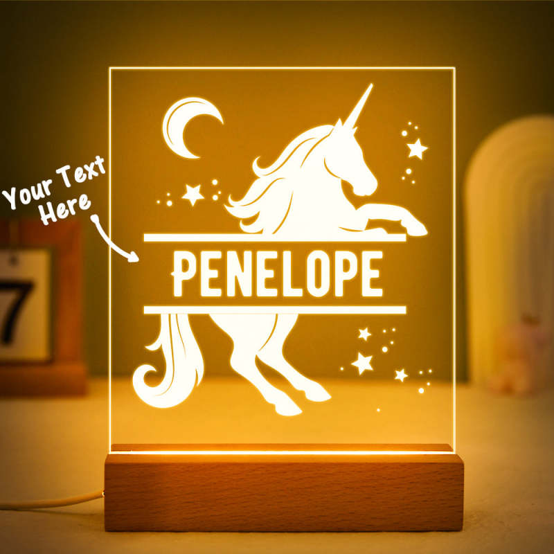 Bonita Lámpara De Dormitorio Para Niña Con Luz De Noche Led De Unicornio Y Estrellas Personalizada Con Nombre