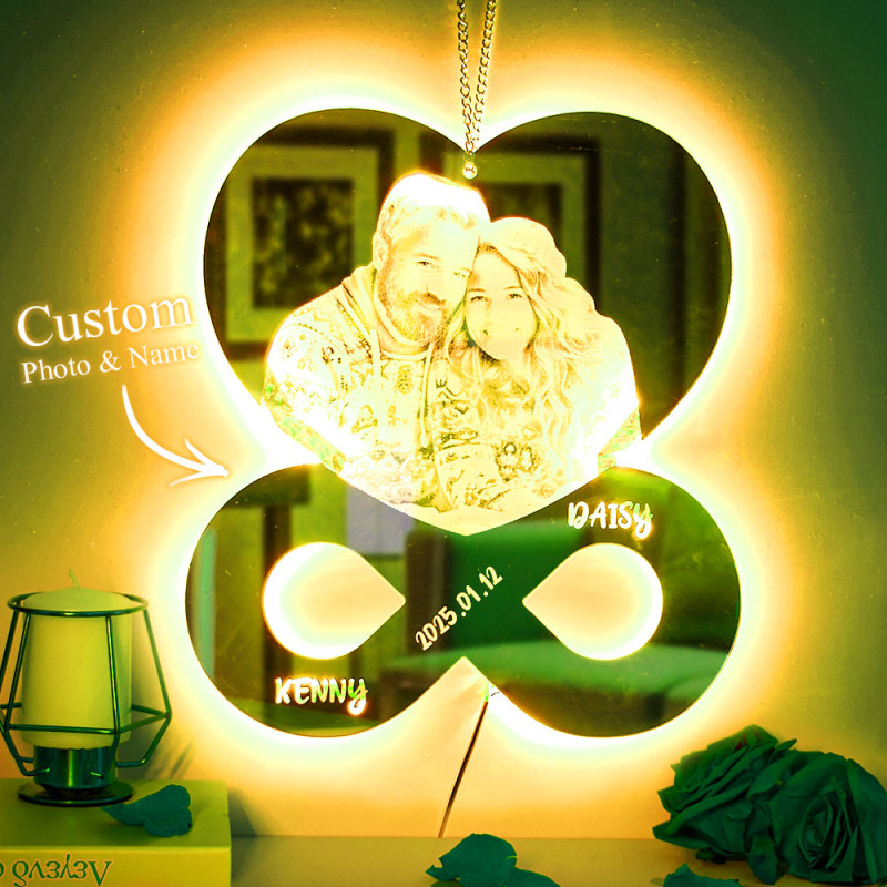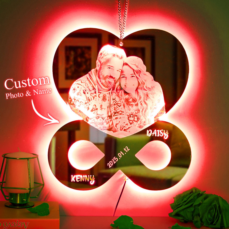 Espejo Con Foto Y Nombre Personalizados, Luz De Noche, Decoración Para Dormitorio, Regalos De Aniversario De Boda Para Ella