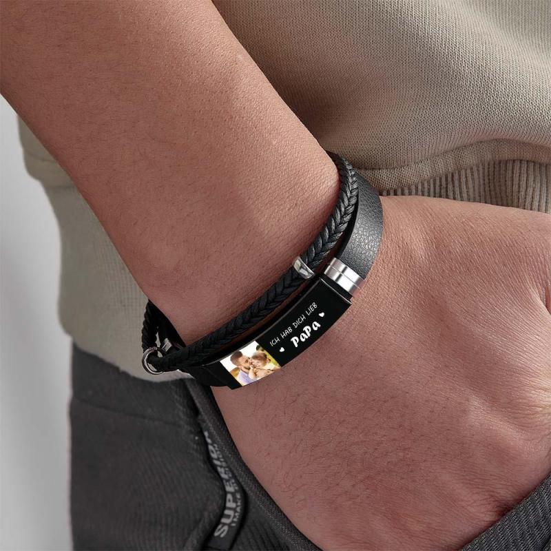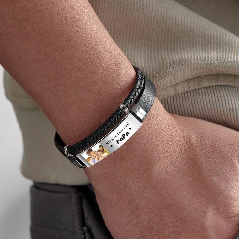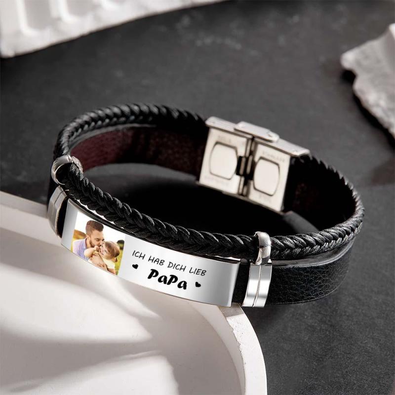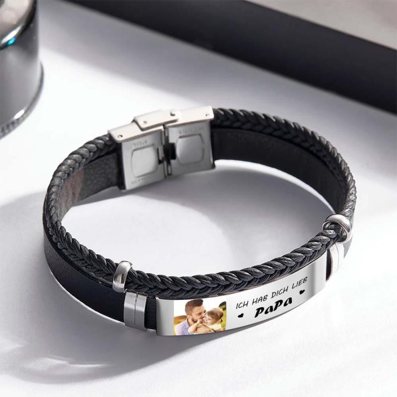 Pulsera De Cuero Con Foto Personalizada Y Brazalete Trenzado Con Texto Regalos Para El Día Del Padre