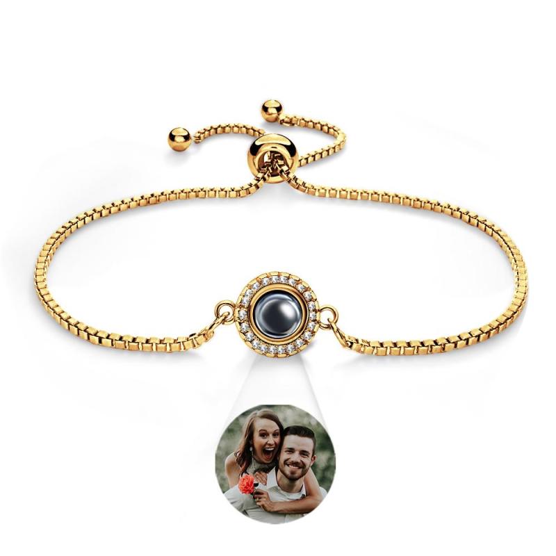 Pulsera De Proyección De Fotos Personalizada, Pulsera Ajustable De Circonita Redonda, Regalo Del Día De San Valentín
