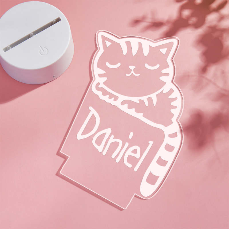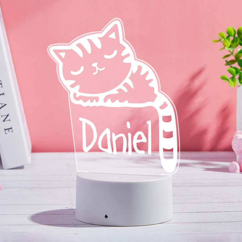 La Luz De La Noche Del Gatito Durmiente Personalizó La Lámpara Del Nombre De Los Niños Para El Dormitorio Del Bebé